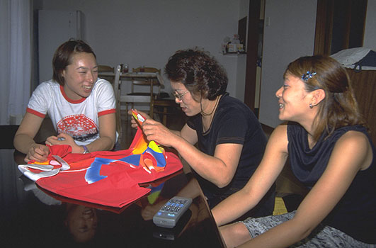 In this picture, On'ni is showing Mother the Korean team uniform she received after she helped out as an interpreter for an international badminton tournament held in Japan.