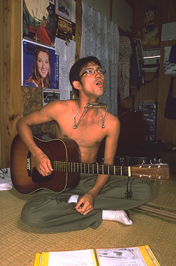 집에 돌아와 시간이 있을 때는 기타나 산신*연습을 하거나 곡을 만듭니다. 나는 늘 남들과 다른 걸 하고 싶습니다. 음악에서도 그렇구요. 나만의 음과 리듬을 만들고 내고 싶거든요. 이론이나 규정에 얽매이거나 기술만으로 평가받는 음악은 하고 싶지 않습니다. 우주를 느끼게 할 만한 스케일이 광대한 음악을 만들어 가고 싶습니다.