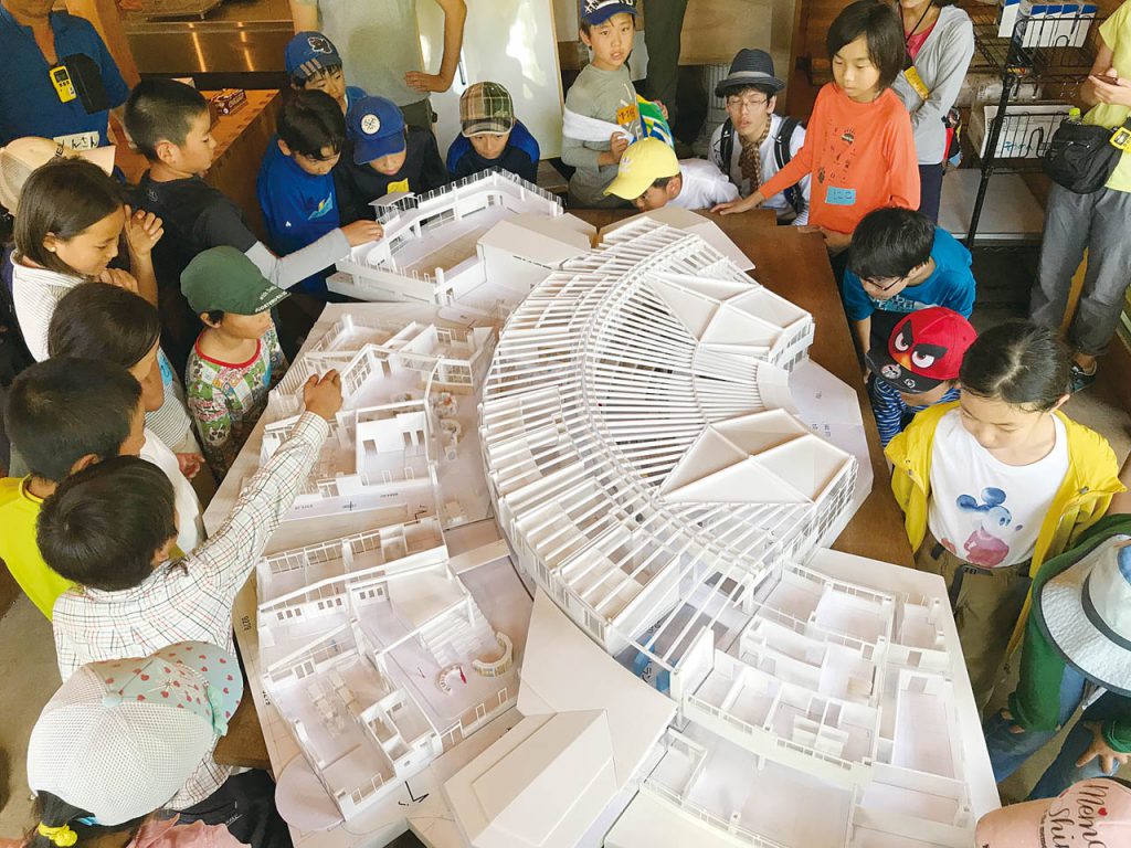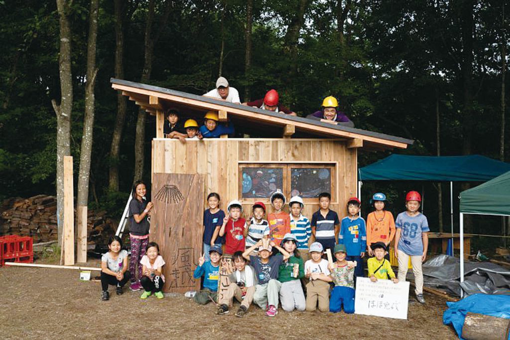 2017年8月に、小学生低学年と高学年を対象にサマースクールを実施しました。高学年向けでは、「3歳から15歳までの子どもたちが遊んだり学んだりする『風越山荘』を4日間で建築してほしい。開校後には敷地内に移築したい」と、22名の参加者一人ひとりに発注書を手渡しました。プロの大工さんの力を借りて、設計図を見ながらつくっていきました。その過程で、道具を使うときのルールを決めたり、よりよいやり方を見つけたら仲間に提案したり、助けがほしいときには声をかけたり、そんな姿が見られました。完成をめざして没頭する姿が印象的でした。これは軽井沢風越学園がめざしている遊びと学びの一端です。