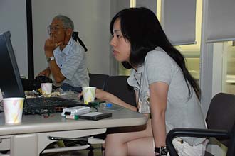 午后,在TJF办公室里开始选择照片。Midoring和Yabi-chan记住了汉语的“要!”和“不要!”,对每张照片都大叫“要!”或“不要!”。
