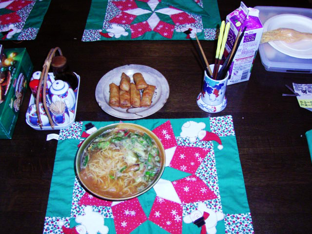 今天是拉面和春卷。