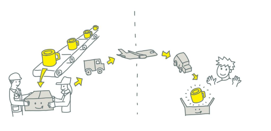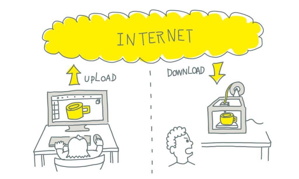 「今までの流通では、何かを作って売ろうとする場合、まず原型師と呼ばれる人が1〜2週間かけて木で精密な型を作り、次にその木の型を元に金型を作り、できた金型に工場でプラスティックを流し込んで量産してたの。それが、3万円の3Dプリンタがあって2日くらい待てば(コップの場合)、自分の必要なものができる」