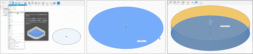 設計図が描けたら、今度は「押し出し」機能を使って立体化します。