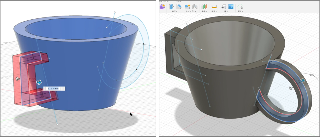 これで取手のついたコップの形が出来上がりました。