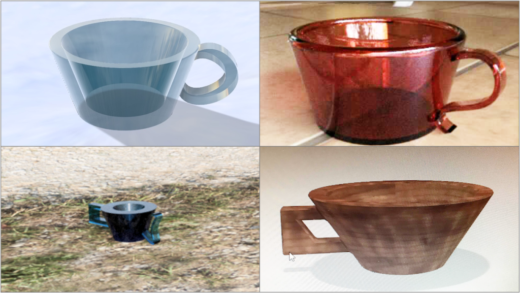 ほとんどのみなさんが、自分自身で設計した取手付きカップのCGを完成。講座後に設計したカップの画像を講座参加者用コミュニティ(discordを利用)でシェアしてくださった方も何人かいました。