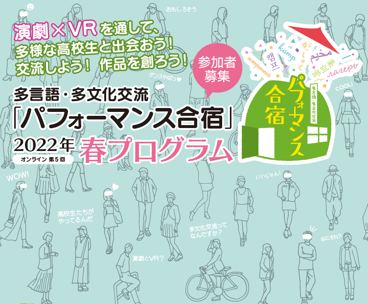 多言語・多文化交流「パフォーマンス合宿」2022年春プログラムが3月5日にスタートしました。オンラインで実施する6回連続プログラムのうち、最終回となる4月3日(日)には、成果発表会を行い、オンラインにて一般公開します。