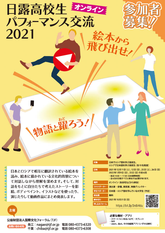 TJFでは2015年から日露交流プロジェクトを開始し、日露の教師と高校生の交流プログラムを実施してきました。新型コロナウイルスの影響で対面交流はできませんが、12月から1月にかけて、オンラインで「日露高校生パフォーマンス交流」を実施することにしました。