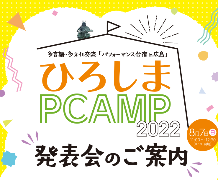 3年ぶりとなる対面での多言語・多文化交流「パフォーマンス合宿in 広島」(ひろしまPCAMP)の発表会を8月7日(日)に広島で行います。参加者募集を6月末に締め切り、30人超の申し込みがありました。中国、日本、ネパール、バングラディシュ、フィリピン、ブラジルなど、さまざまなバックグラウンドをもつ高校生が広島各地から安芸高田市に集い、8月4~7日に寝食を共にしながら、芸術表現活動を通じて交流します。