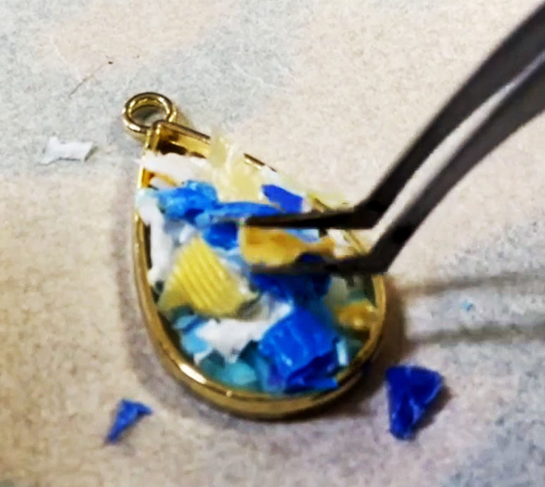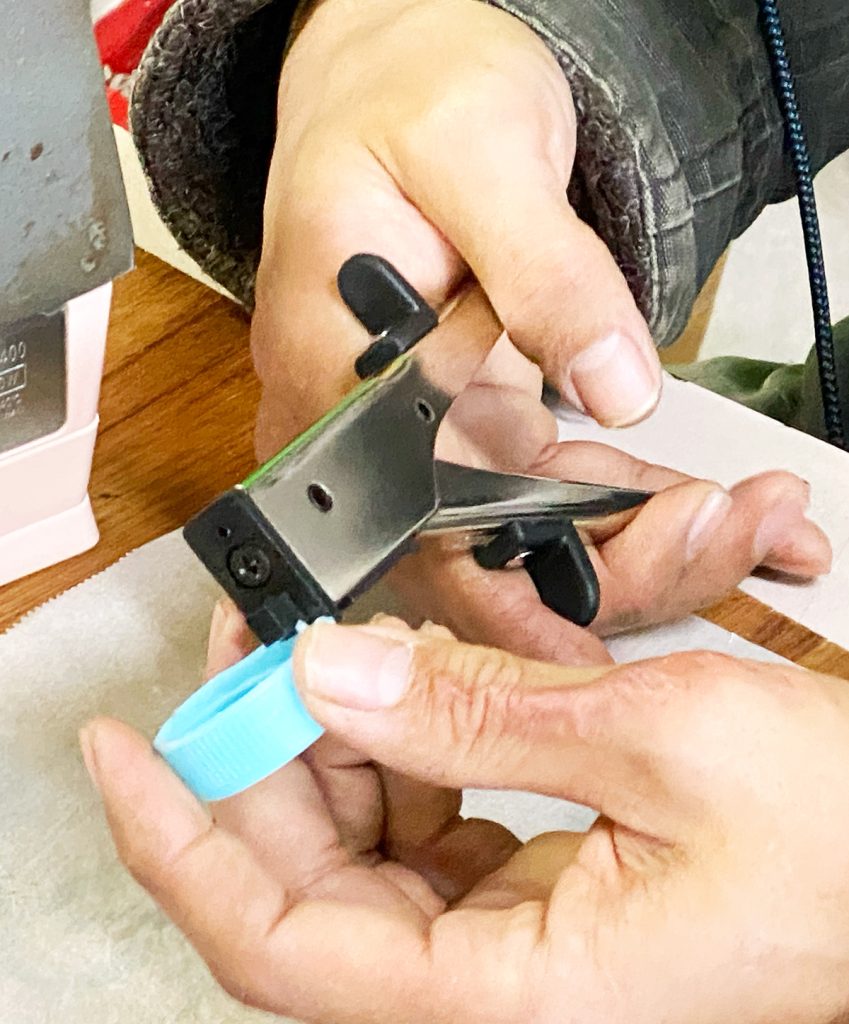 工作編を締めくくるのはアクセサリー作り。ペットボトルキャップから切り出したペレットでペンダントトップを作ります。