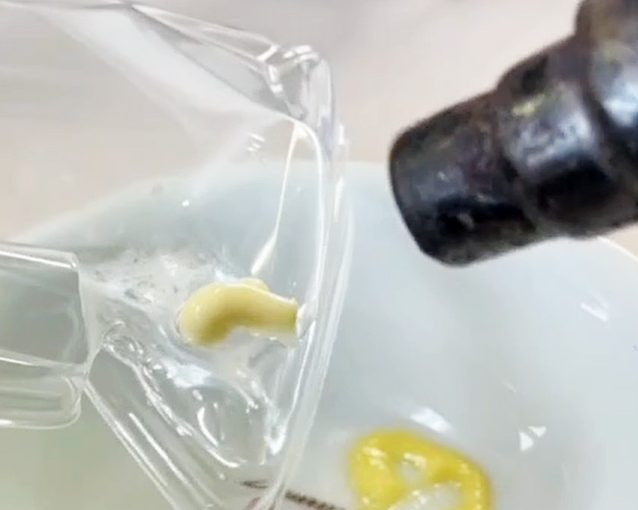 「ポリスチレンを加熱して高温になると、ひしゃげます。みんなもお弁当をレンジにかけて、容器がグニャグニャになったことがありますよね? そんな温度になったときに油分が付着していると、ポリスチレンは溶けてしまう。溶けるだけならいいけど、そこに食べ物がくっついていたら、ポリスチレンから溶け出した何かも一緒に口にすることになる。