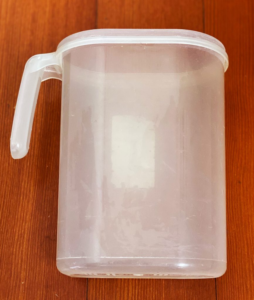 例えば、ペットっていうのはポリエチレンテレフタレートっていう、化繊のポリエステルと似た材料です。だからペットボトルをリサイクルして衣服にしたりする。今見せているピッチャーの素材はポリプロピレンです。PP。