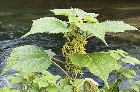 講座の後半パートは、自然素材を使った縄綯いからスタート。テンダーさんからは、繊維が強くて長いイネ科の植物か、強靭な繊維をもつ苧麻類を入手する課題が出ていました。見本用にテンダーさんが用意していたのは「カヤ」の名でくくられる背の高いイネ科の草の一種。