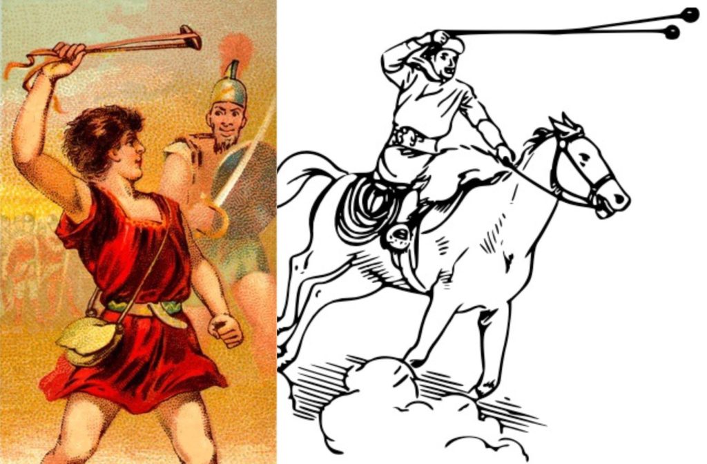 右: ボーラ(photo, Public domain, from FreeSVG.org),