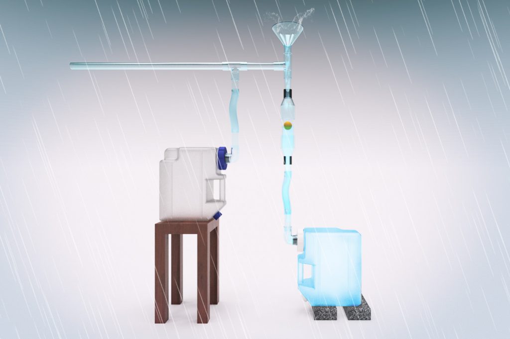 いくつかのタンクとそれらをつなぐ配管類さえあれば、雨水を溜めるのは簡単。しかし、それだけでは空気中や屋根に積もった汚れも一緒にタンクに入ってしまいます。そこで取り入れるのが、降り始めの汚れの多い雨だけをカットする「ファーストフラッシュ」という機構です。シンプルだけど効果の高いシステムで、自宅の屋根を水源に変えます!