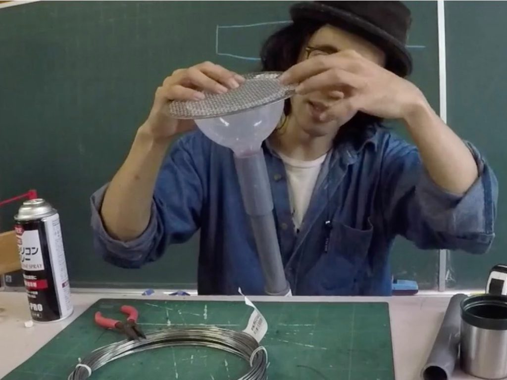 「金網はジョウゴの口に対して並行になるよりも、斜めに設置できたほうがいい。水流に対して金網が斜めだと、流れてきた落ち葉などを外側に排出する力が生まれるから。水流を正面で受けると、金網に落ち葉が張り付いちゃう」