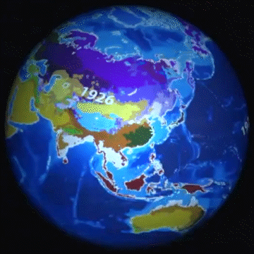 多すぎる水と少なすぎる水がコインの裏表のように切り離せない関係にあることが紹介され、温暖化に向かう流れが少しでも緩やかになるような取り組みを続けることの重要性が説かれました。一方、ケッペンの気候区分の変化を「SPHERE」に表示し、温帯が10年に6キロ、1年600メートル 、毎日1.7mメートル北上している様子を解説しながら、気候の変化や変動に柔軟に適応していく事も同時に求められていることが伝えられました。