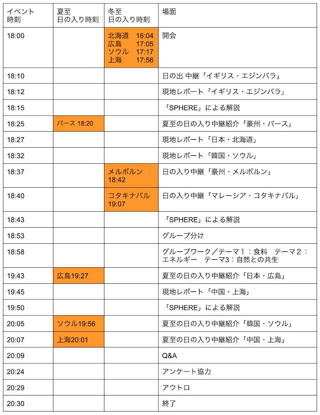 今回は前回夏至の日に実施したのと同じ時間に、イギリスのエジンバラ、日本の北海道、韓国のソウル、中国の上海、オーストラリアのメルボルン、マレーシアのコタキナバルをオンライン(Zoom)で繋ぎ、夏至同様インタラクティブ地球儀「SPHERE」(以下「SPHERE」)を使って実施しました。