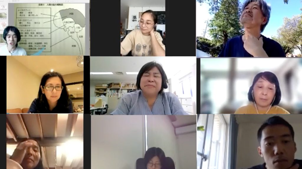なんとなくバカバカしいワークなんだけど、実は、サンショウウオをかぶっていてもいなくても、ヒトも何かイベントが発生する出会い頭の状況は同じなんですよね。