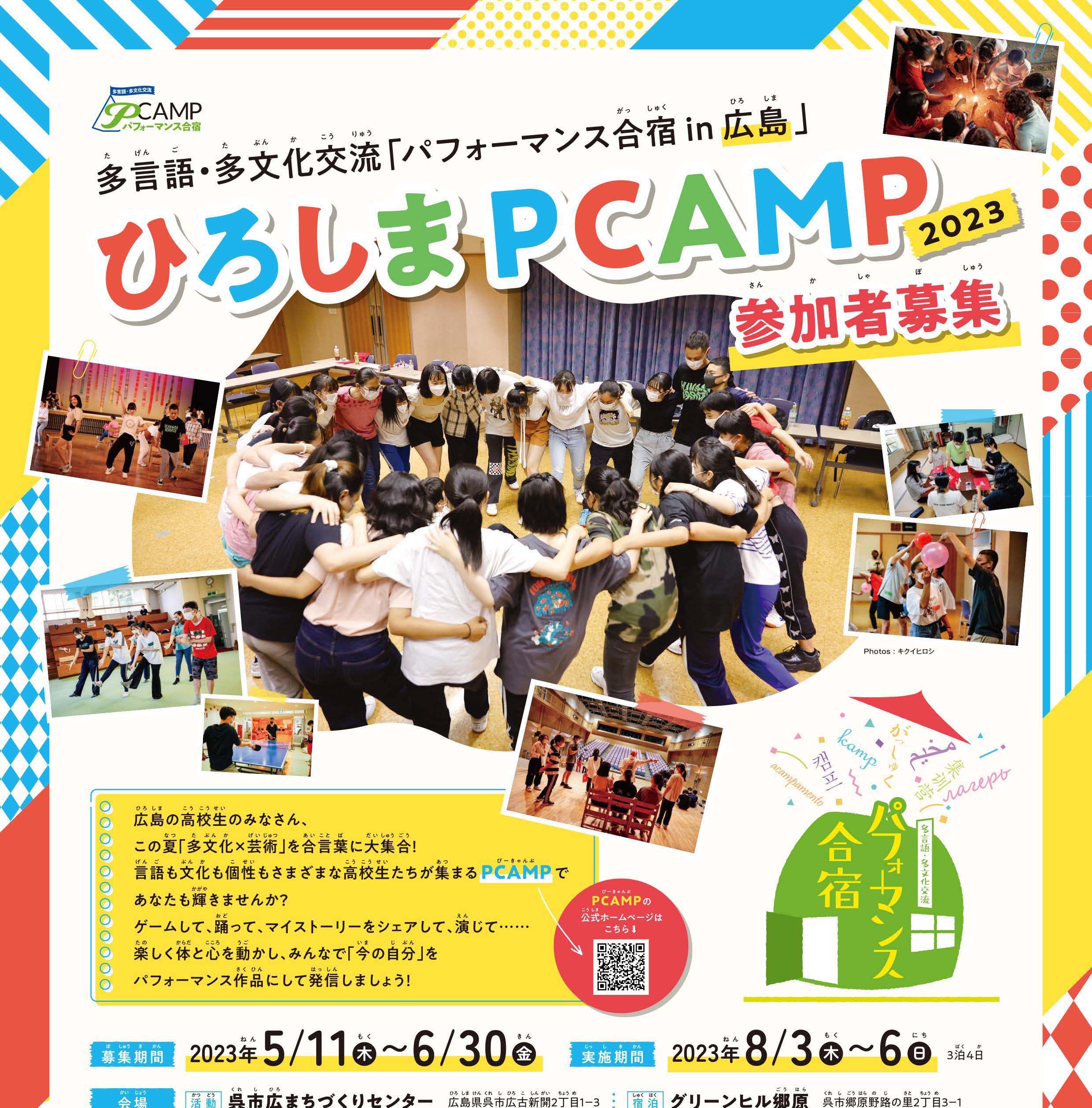 今年の「ひろしまPCAMP2023」も充実したプログラムになるよう準備を進めています。みなさまの周りのダンスが好き、演劇が好き、人見知りだけどやってみたい、いろいろな文化に触れてみたい、高校生最後の夏の思い出にしたい…といった15~19歳の方々に是非このプログラムをご紹介いただきたいと思います。