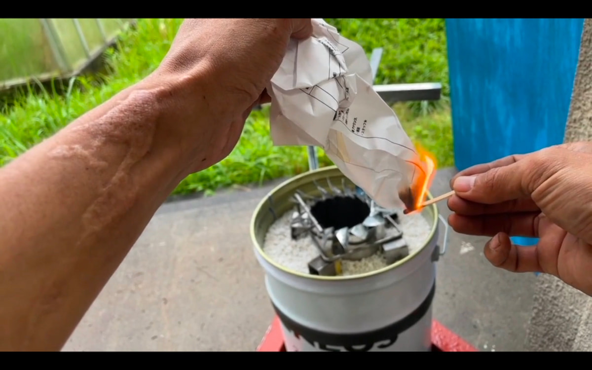 ロケットストーブなどでは、投入した薪に火種がうまく接しないために火がつかない、ということも多々ありますが、ビクナイザーがあれば火種投入後、20秒後には火柱が上がります。