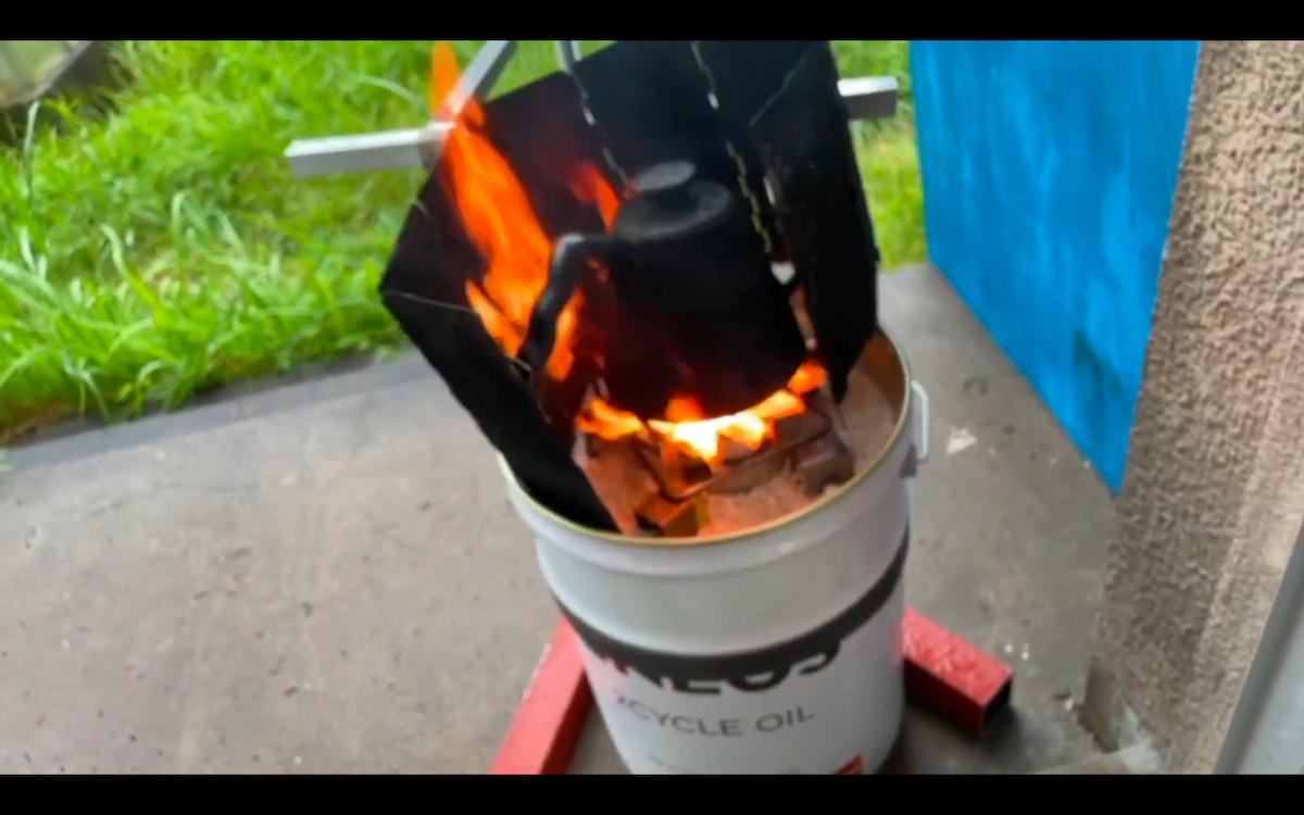 また両者ともごくわずかな薪(ロケットストーブの1/2〜1/3程度)で目的を達することから、薪のエネルギーが大幅に鍋底に届いていると推察できます。