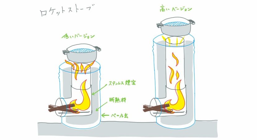 また、「燃焼効率を上げる」ために、燃焼筒を伸ばした「高いバージョン」を作ったりするので、鍋に届く輻射熱はさらに弱まります。