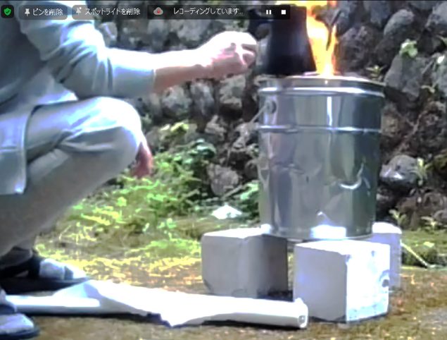 「その辺のもので生きる」講座はオンライン講座でありながら、このときは参加者さんが全世界で一斉に火入れをおこないました。
