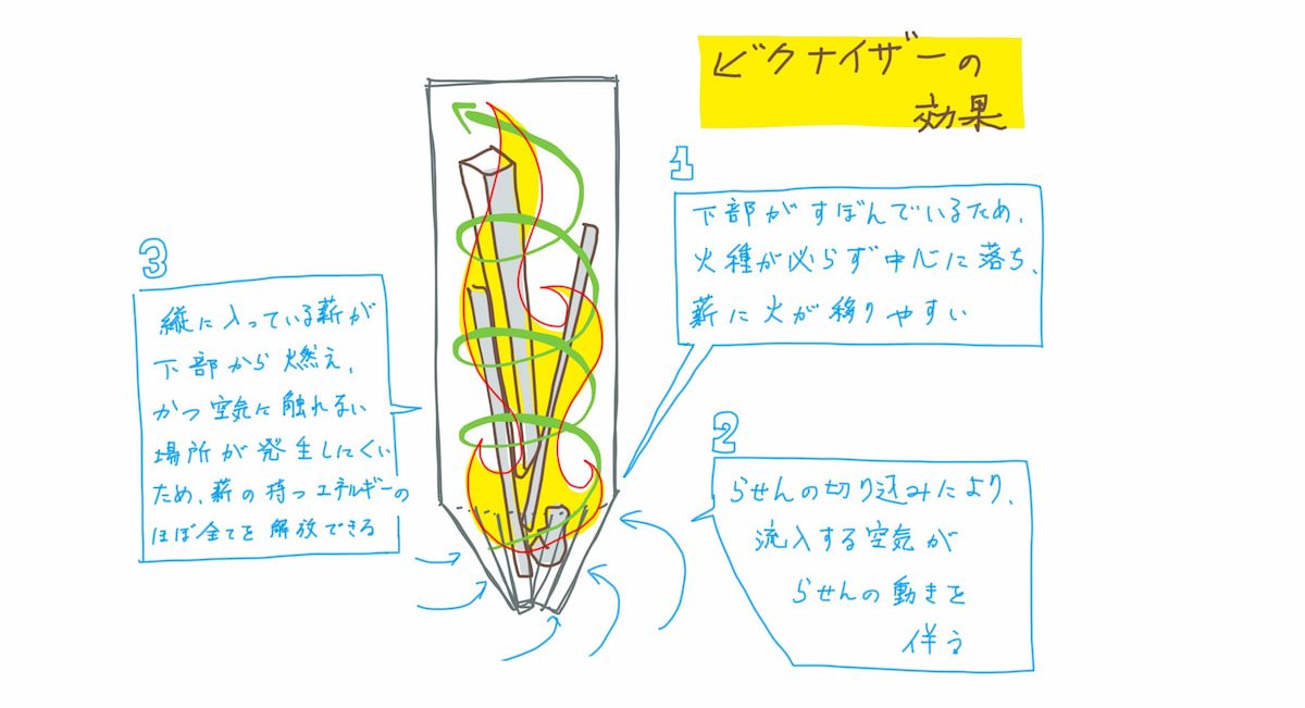 従来のロケットストーブでは説明されていなかった(端折られていた)輻射熱の利用と、燃焼という現象の理解により迫る内容になること請け合いです。
