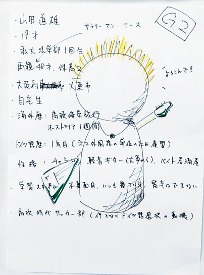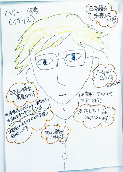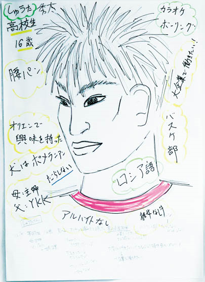 2013年度から実施している「外国語学習のめやすマスター研修」。「外国語学習のめやす」の考えに基づいた研修はそれ自体が新しいスタイルだ。マスター研修参加者18名は教えている言語に関係なく、3~4人のグループに分かれ、グループごとに授業プランをつくる。今回はまず、どんな学習者を対象にするのか、学習者像を具体化していった。どんな性格で、部活は何をやり、趣味は何なのか、なぜそのことばを勉強したいのか、週にどれぐらい学習に使える時間はあるのか、など。この作業が、それぞれの学習者の関心や興味と連携した授業プランを考えることにもつながり、ひいては学習効果を高めることになる、と主任講師を務める山崎直樹・関西大学教授は言う。