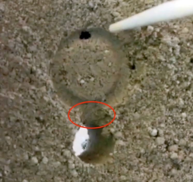 穴を掘って、そこから出た砂を隣に盛って山にして、腕を突っ込んでトンネルを掘り、最後にそこに水を流す・・・。