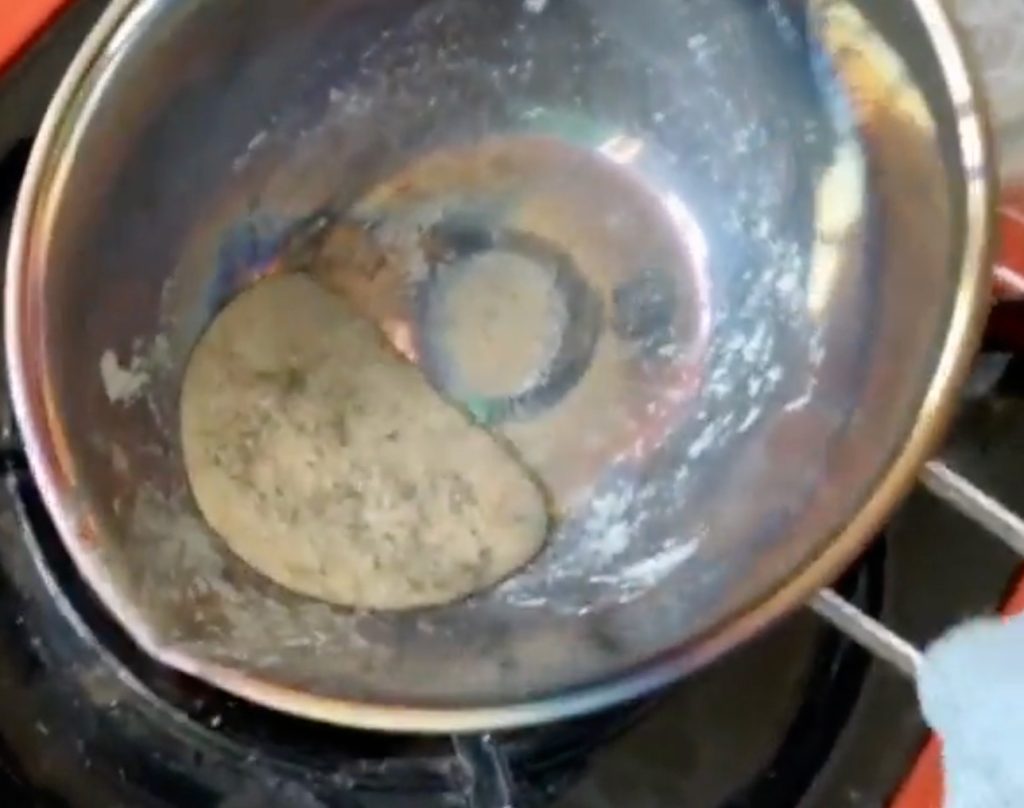 消火の準備をし(錫には水は絶対にかけない。万一、コンロの火が燃え広がった場合、火にかけるための水)、目を保護するためのゴーグルをする。必要に応じて軍手をする。