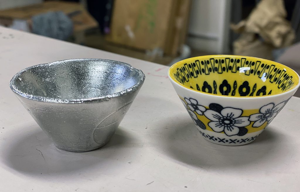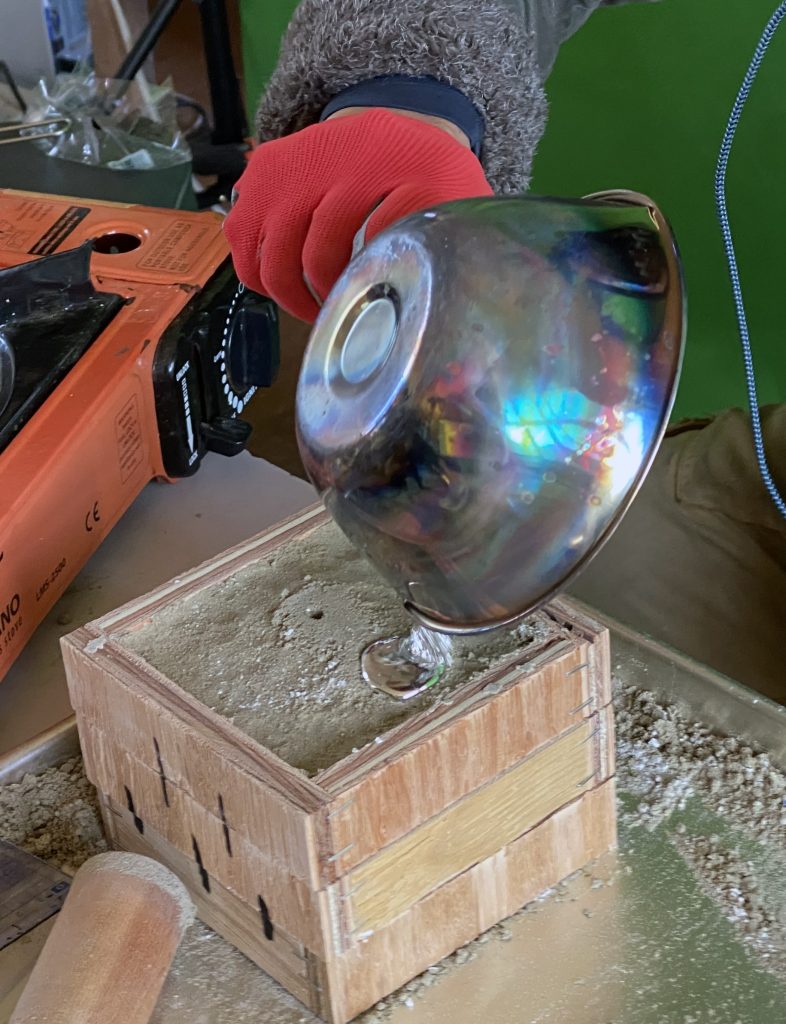 人類が6000年ものあいだ続けている普遍的な技術である鋳造を取り上げ、世界中で普遍的な材料である「砂」で型を作り、実際に錫をカセットコンロで溶かし、型に流し込んでお猪口(ちょこ)を作りました。