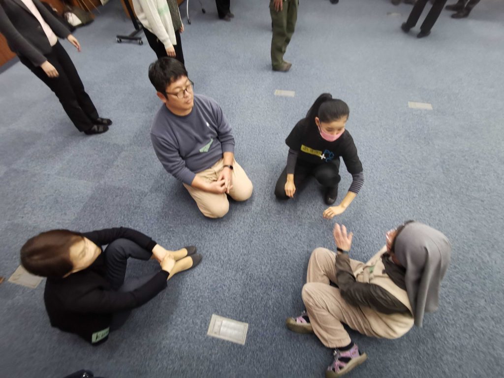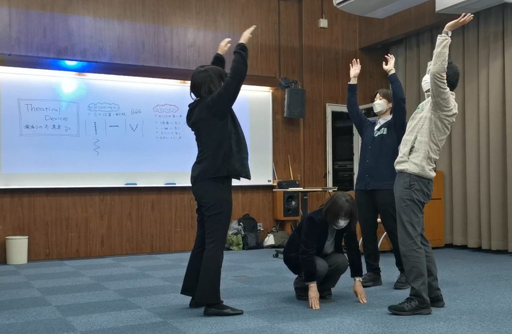 - 勝手に教員の皆さんの年齢などを考えてしまい、恥ずかしがってシアターゲームはできるのだろうかと心配していたが、皆さんはびっくりするような、完成度の高い劇、パフォーマンスを作ることができて、これはすごいことだな、その力に信頼が生まれました。
