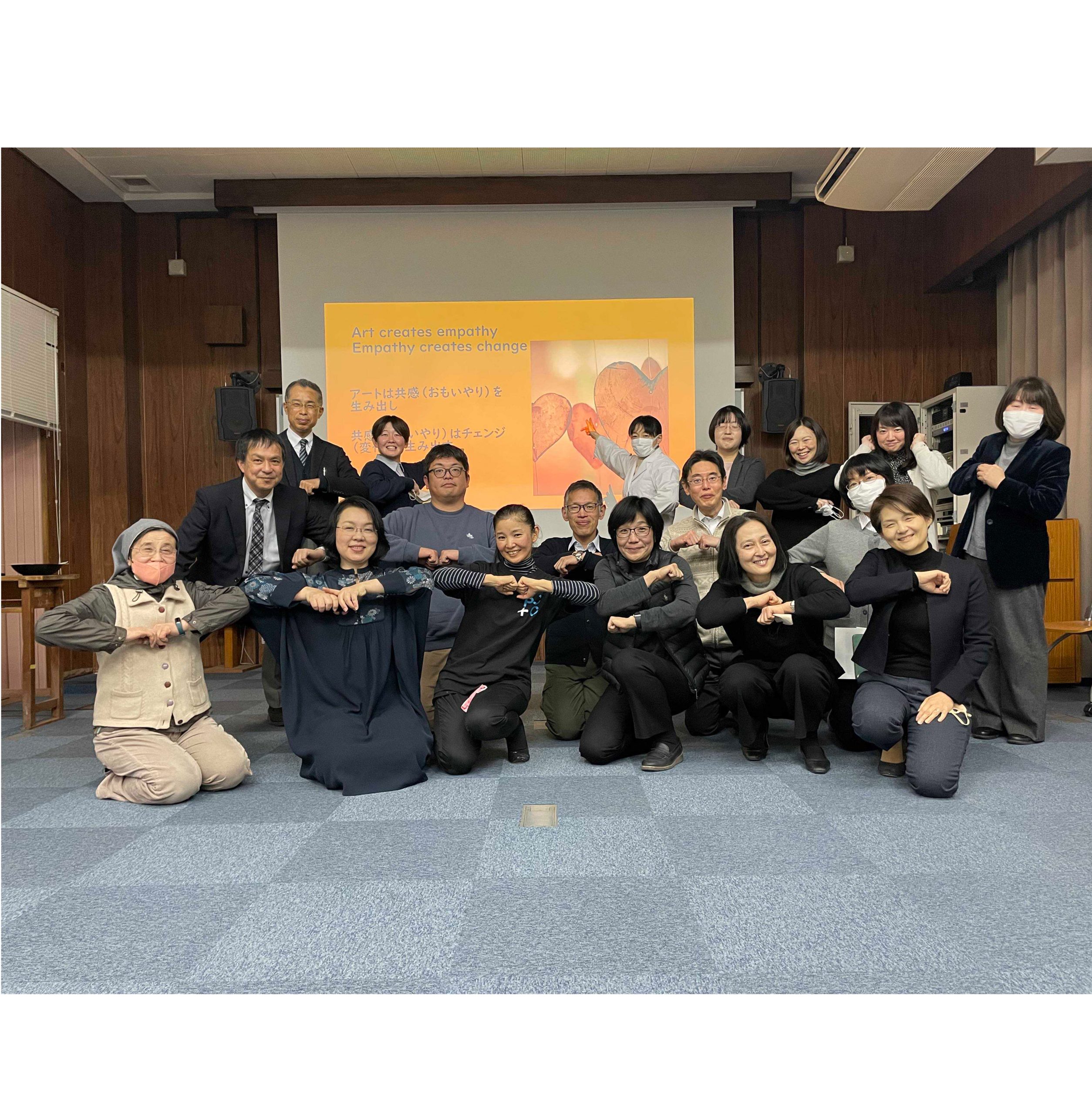 2023年12月23日(土)、TJFは初の教員向け「演劇教育ワークショップ」を福山暁の星女子中学校・高等学校(広島県福山市)で実施しました。教頭先生をはじめ教員17名の参加がありました。 福山暁の星女子中学校・高等学校には外国につながる生徒も在籍していることと、「学び方改革」を行っていることもあり、「多文化×芸術」をコンセプトとするPCAMPに関心をもってくださり、今回の共同企画につながりました。