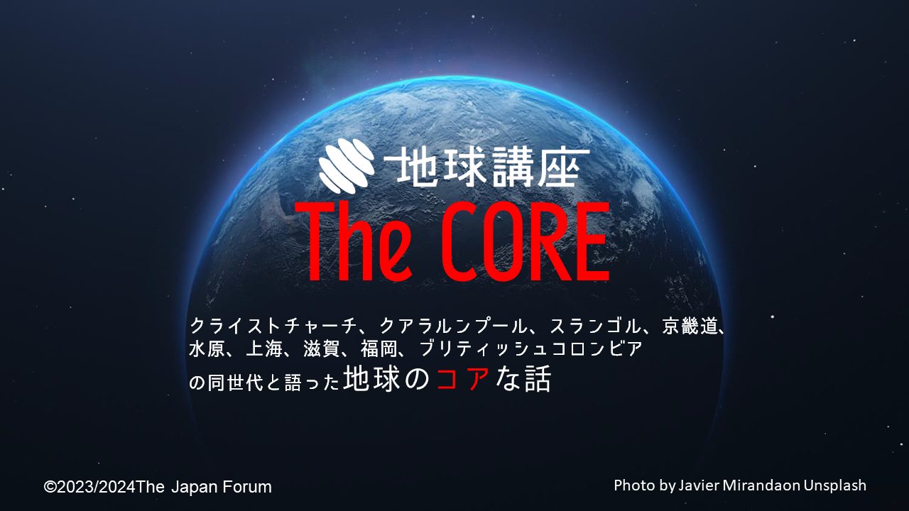 昨年2023年11月11日、12月2日、23日に、地球講座 The COREをオンラインで実施しました。クライストチャーチ(ニュージーランド)、クアラルンプール、スランゴル(マレーシア)、京畿道、水原(韓国)、上海(中国)、滋賀、福岡(日本)、ブリティッシュコロンビア(カナダ)の9つの都市から集まった16名の高校生・大学生が参加し、未来の地球について考えました。