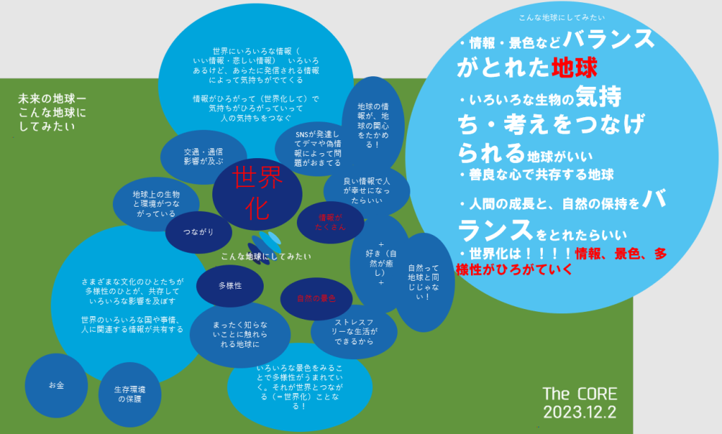 2日目 グループで「未来の地球ーこんな地球にしてみたい」について話しあう
