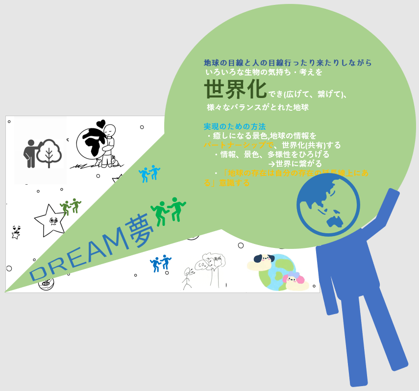 ・癒しになる景色、地球の情報をパートナーシップで、世界化(共有)すること