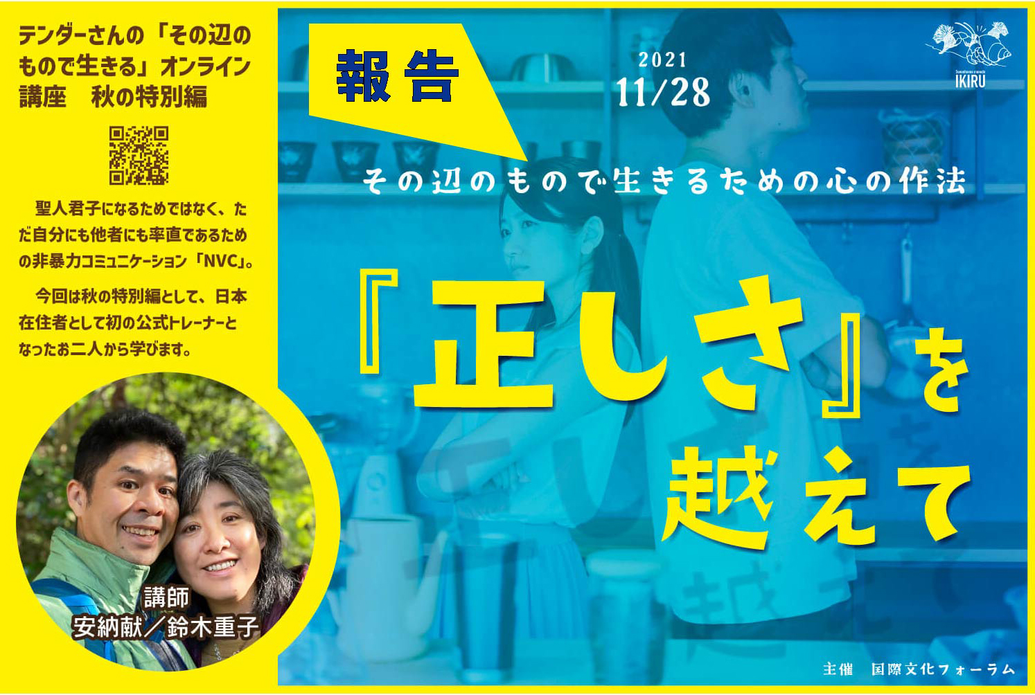 「その辺のもので生きるための心の作法 〜『正しさ』を越えて」(テンダーさんの「その辺のもので生きる」オンライン講座【秋の特別編】)