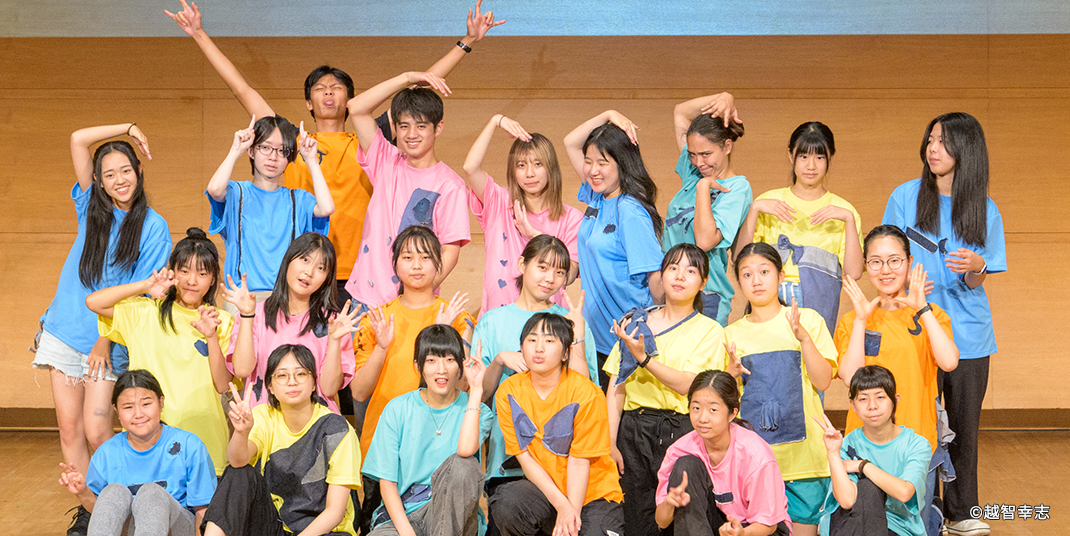 また、今回は海外ゲスト枠として韓国の高校で日本語を学ぶ生徒2名を招待し、合計22名の中高生年代が3泊4日の合宿生活を共に送り、交流、創作活動、発表会を行いました。参加者に伴走するのは、「ひろしまPCAMP」の第1回から関わっているファシリテーター5名(メイン3名、サブ2名)です。ふだんはそれぞれニューヨーク、東京、広島を拠点に活躍しているアーティストから成るファシリテーターチームとスタッフチームが運営を担い、参加者22名のパフォーマンス作品創りと最終日の発表会に伴走しました。