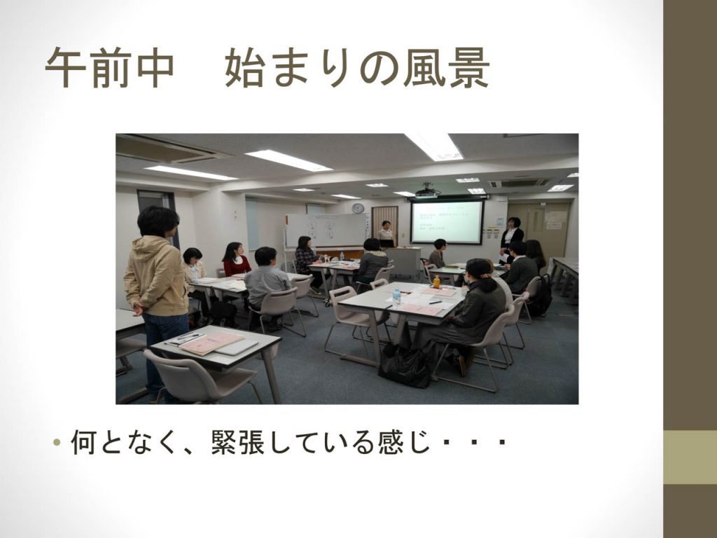 初めてのウォーミングアップ研修は、2014年4月に、ドイツ語の田原憲和氏(立命館大学)とロシア語の横井幸子氏(大阪大学)が講師となり、立命館大学大阪キャンパスで開催されました。この研修に神奈川からドイツ語の池谷尚美氏(横浜市立大学)が参加していました。池谷氏は、自分がウォーミングアップ研修を実施するにあたって、どのようにやるのがいいのかを考えていたのです。そして同年11月に、フランス語の野澤督氏(慶應義塾大学)と共同でウォーミングアップ研修を実施しました。池谷氏は、他のマスターが企画しやすいように、一日の研修がどんな流れで行われるのかを示した詳細なカリキュラムや研修の様子がわかる動画をつくり、マスター仲間と共有してくれています。