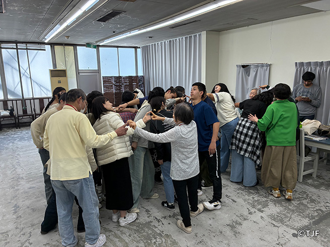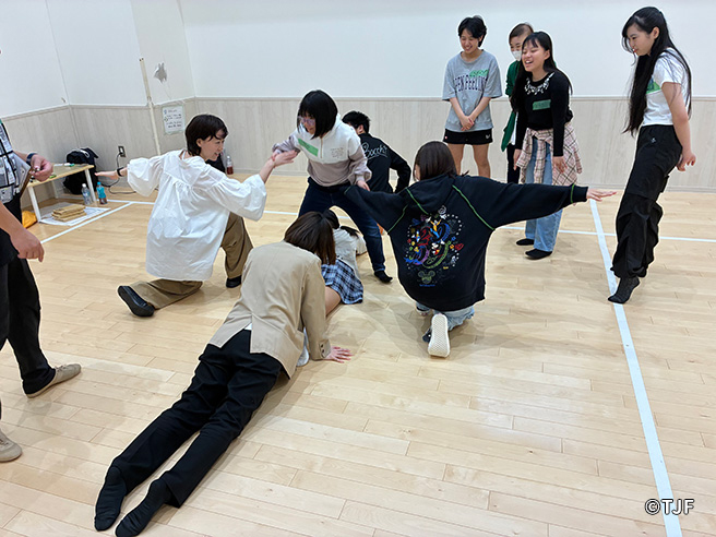 東京在住で振付家・ダンサーの田畑真希さんがメインファシリテーター、富山在住で舞台俳優・専門学校教員の長谷川万葉さんがサブファシリテーターを務め、身体表現中心のアクティビティを行いました。