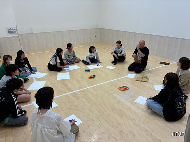 TJFでは、「多文化×芸術」をコンセプトに、学校や地域に出向いて行うアウトリーチ*型のワークショップを行っています。2025年4月26日(土)にはNPO法人アレッセ高岡で、5月25日(日)には富山市中央児童館で実施しました。