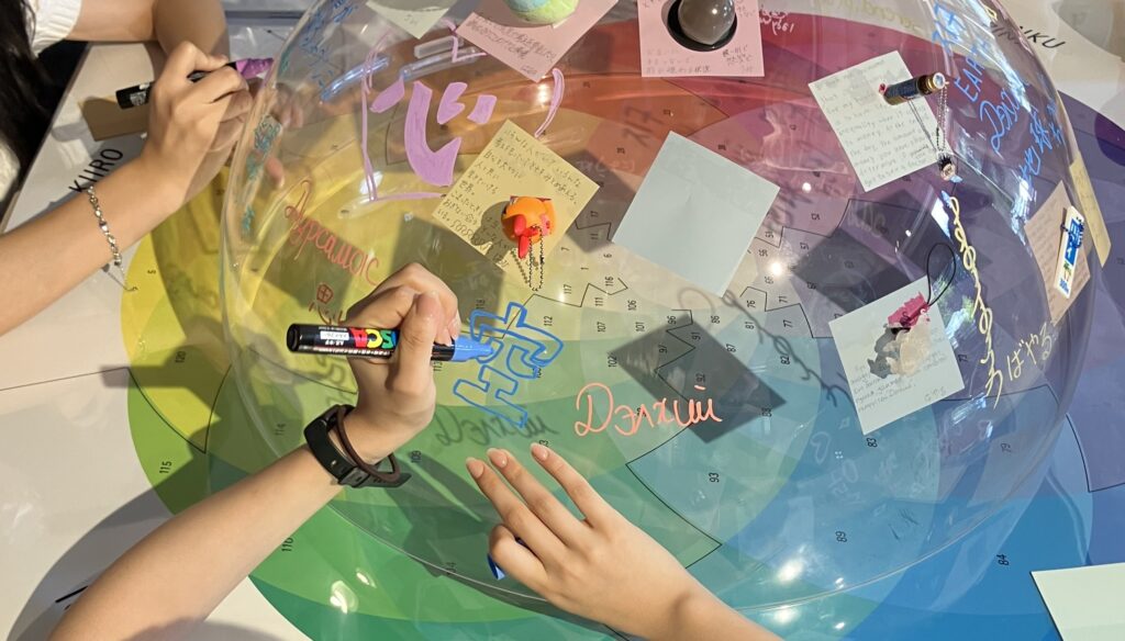 また、発表会終盤で行った、アクリルドーム上で個人の希望的な未来をつなげていく活動でも、思考・対話のテーマをぶらさずに言葉を書いて足していくような工夫をすれば、より地球の希望的な未来を参加者と紡ぐことができたと感じます。