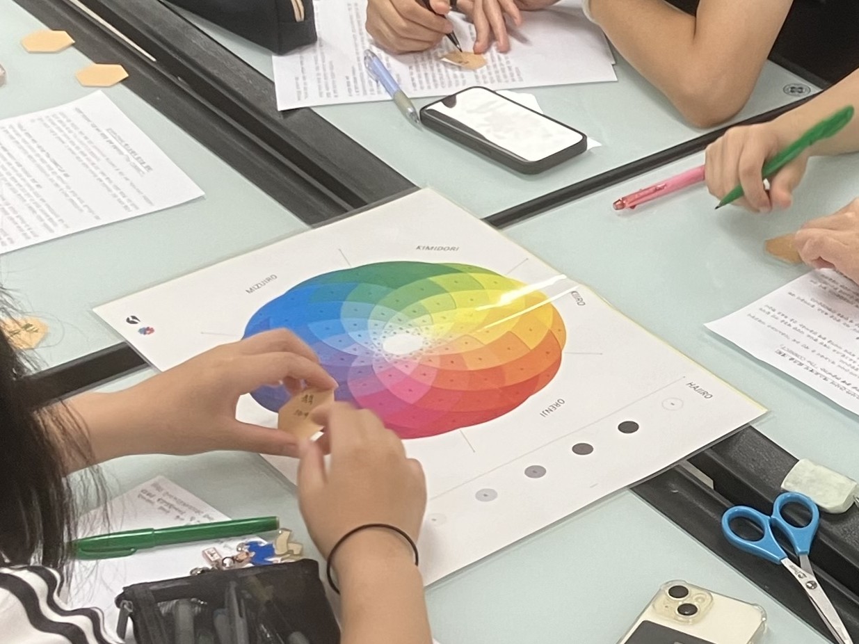 - TJFが作成した126色の色相関図から、「あなたの願う未来の色」を二色選ぶ活動から始めました 。具体的に言語化できない人も、まずは色を選ぶことで未来のイメージを表現することができました。