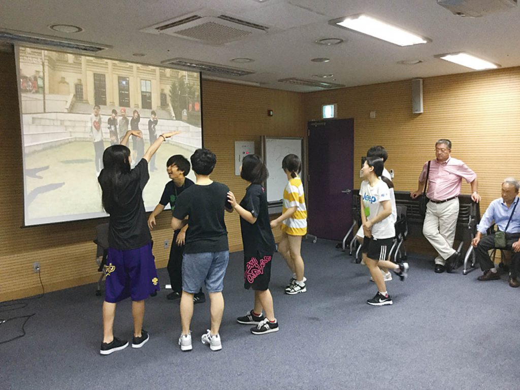 「ソウルでダンス・ダンス・ダンス」で互いのことばを使ってコミュニケーションをとっている中高生に自分の生徒の姿を重ねる。