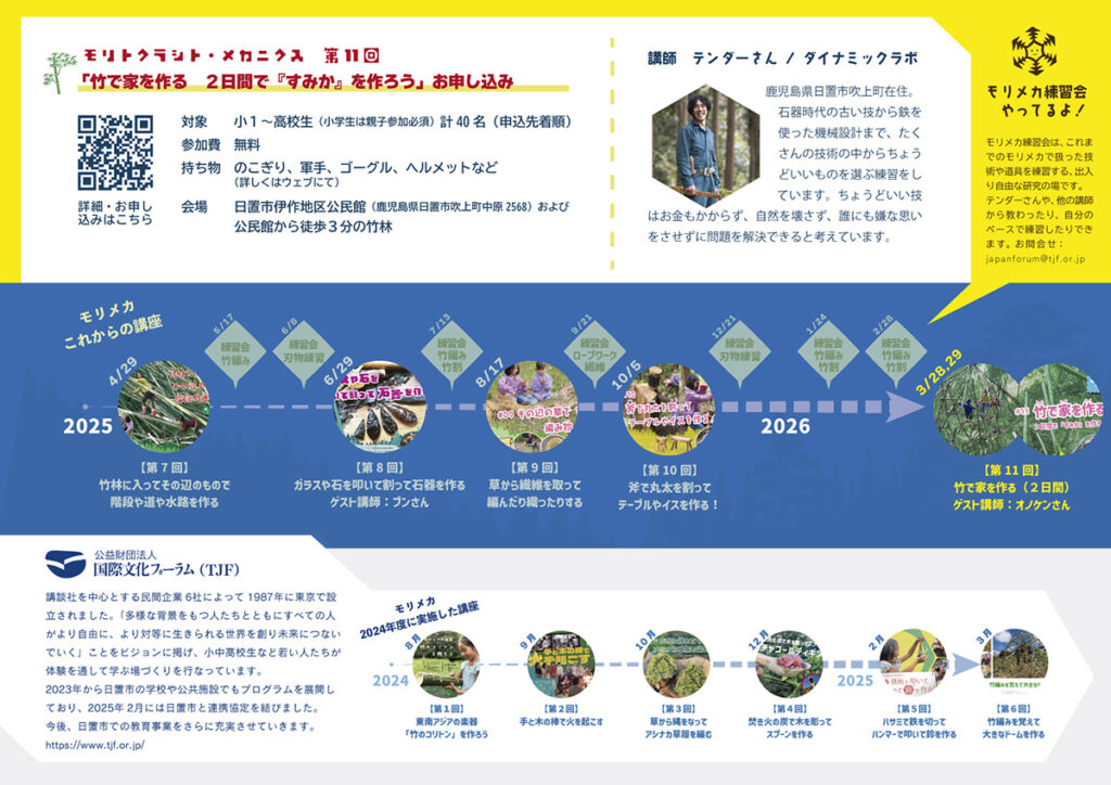 2025年2月、TJFは鹿児島県日置市と、「本質的・探究的・体験的な学びを通した生涯学習の推進に関する 包括連携協定」を締結しました。「モリトクラシト・メカニクス」はその一環として、鹿児島県日置市を拠点に展開しています。