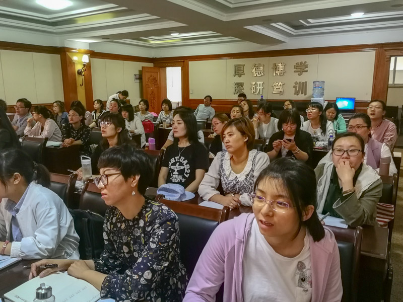 第一弾として5月26日に大連教育学院と共催で中高校の日本語教師研修を実施しました。研修には、大連市内から50名、「好朋友日本文化体験の場」*を有する5校から10名、計60名が参加しました。