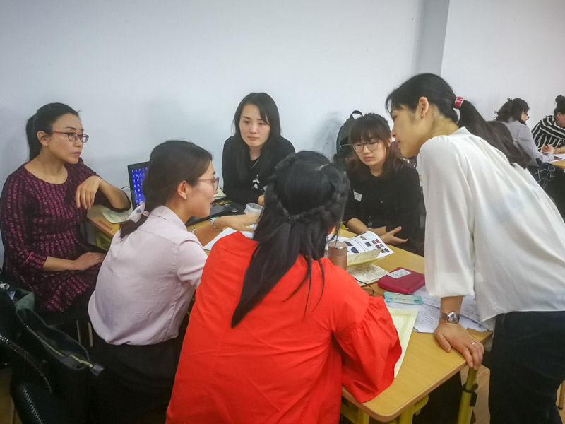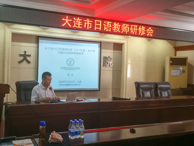 そこで、日本語の課程標準(日本の学習指導要領に相当)の改訂(2018年1月公表)に関わった北京師範大学の林洪副教授に、課程標準がめざすことについて講義をお願いしました。新課程標準では、学習者の協同学習や自律学習を重視し、その評価方法としてルーブリックを取り入れるとしています。今回の講義でも、教える内容と評価の整合性を図ることや、活動の導入時のテーマ、学習の軸となるシチュエーション(解決すべき問題はなにか)、そして日本語の使用の動機づけとなるタスク(問題解決の方法を考えること)が重要であることを強調されていました。