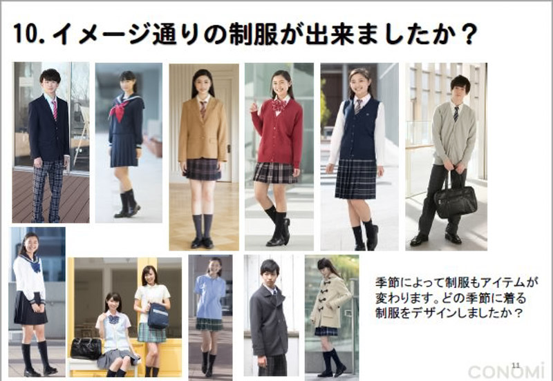 - 学校創立以来、採用されたことのある制服の写真(卒業写真)をみて、どこは残してどこを直したらいいかを考える。