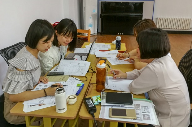 2018年度は、共同事業の一環として「制服」をテーマにしたプロジェクト「わたしたちの学校の制服をデザインしよう」を実施することにしました。これは、大連市内の中高校の日本語の授業で、生徒が自分の学校の特徴を考えて制服をデザインし、日本語でプレゼンするものです。デザインやそのプレゼンを通して、日本語の運用能力だけでなく、思考力、想像力、プレゼン力を磨くことを目標としています。5月に教師研修、6月から9月にかけて日本語の授業で実施し、11月にプレゼンを行うという半年にわたるプロジェクトです。